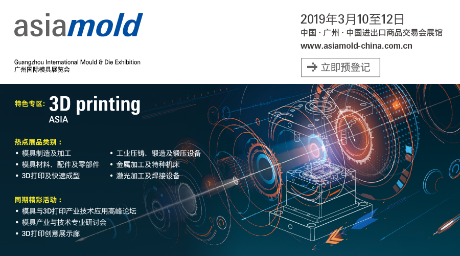 廣州國(guó)際模具展覽會(huì)將于2019年3月10至12日在廣州中國(guó)進(jìn)出口商品交易會(huì)展館行。為期三天的Asiamold將再度與SIAF廣州國(guó)際工業(yè)自動(dòng)化技術(shù)及裝備展覽會(huì)同期舉辦,預(yù)計(jì)吸引超過850家展商,總展覽面積逾60,000平方米。來自世界各地的專業(yè)買家可以在展會(huì)上搜羅炙手可熱的模具制造、壓鑄、金屬加工、3D打印、激光及自動(dòng)化技術(shù)。兩展協(xié)力同期舉辦,將構(gòu)建促成更大協(xié)同效應(yīng)的合作平臺(tái),協(xié)助業(yè)內(nèi)人士開拓商機(jī)。